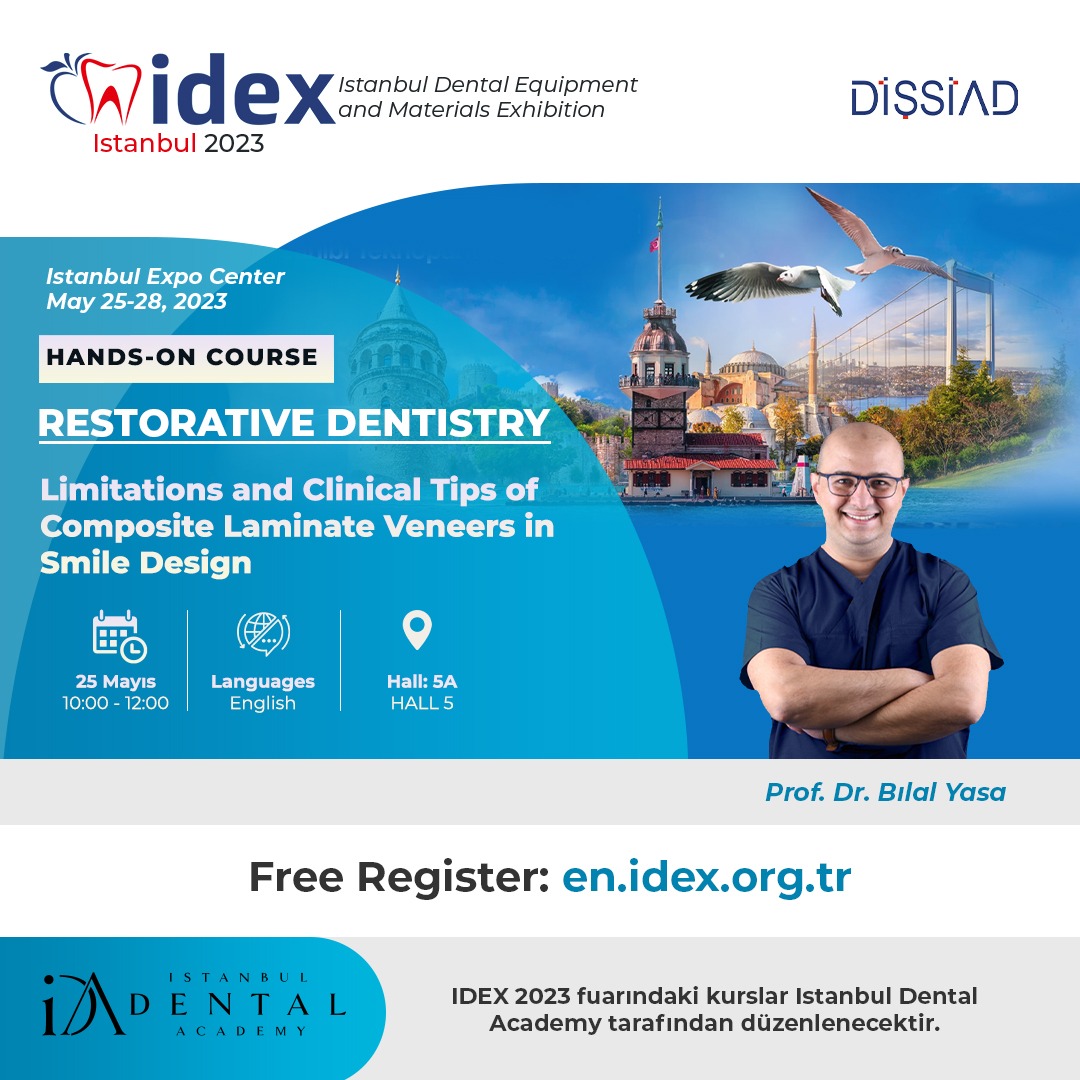The course program, which mostly includes case sharing and clinical tips, will cover simple aesthetic parameters, optical properties of the tooth tissue and the restorative material used, matrixing, layering and finishing techniques. In the practical part; participants will perform a composite lamina veneer restoration on a central tooth prepared on a phantom model.